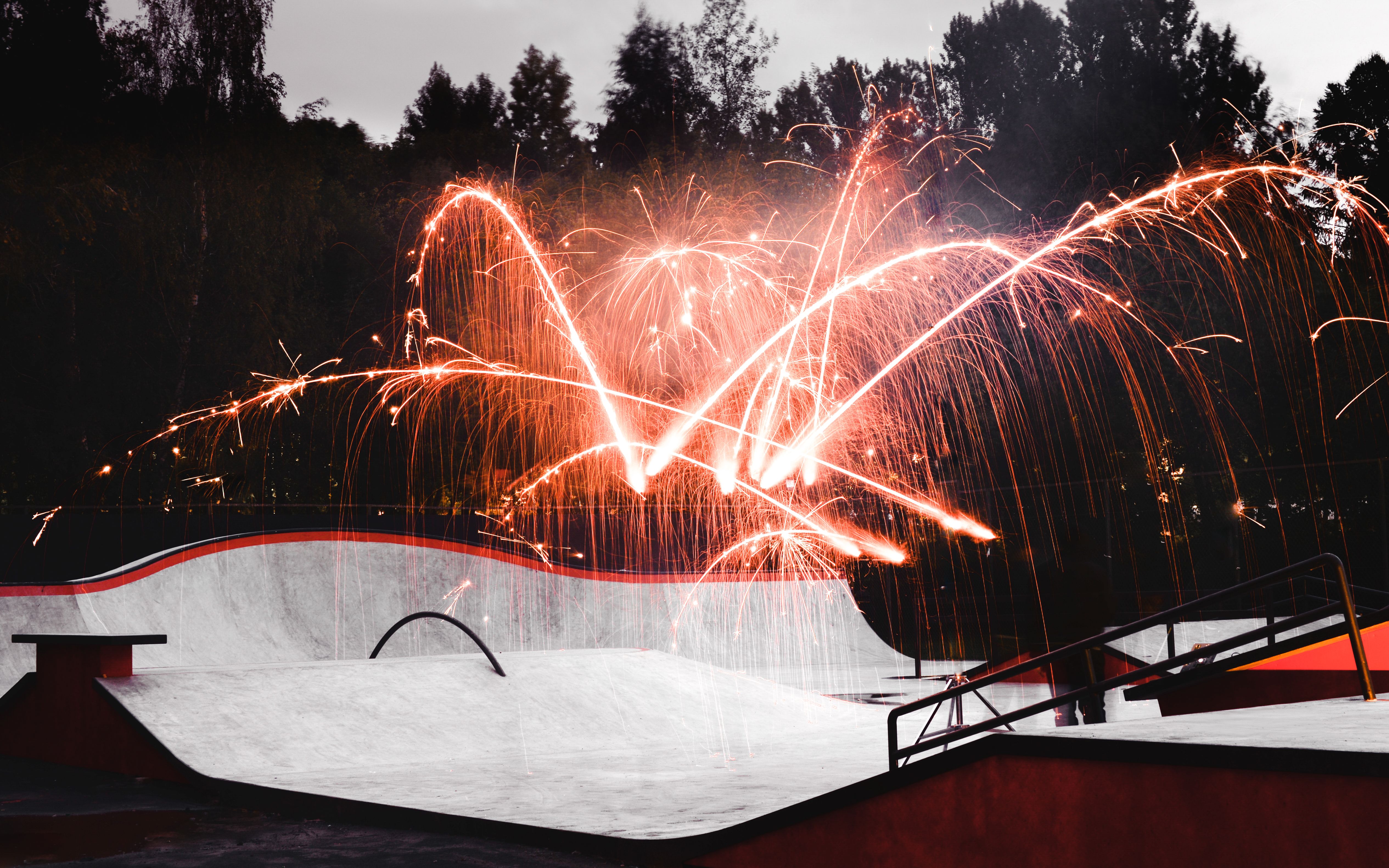 Конструкция скейт-парка выполнена на основе металлокаркаса с фанерным подстилающим слоем. Для финального покрытия использовался фибробетон, что позволило создать прочную и долговечную поверхность, подходящую для экстремальных нагрузок, даже при ограниченном бюджете.
