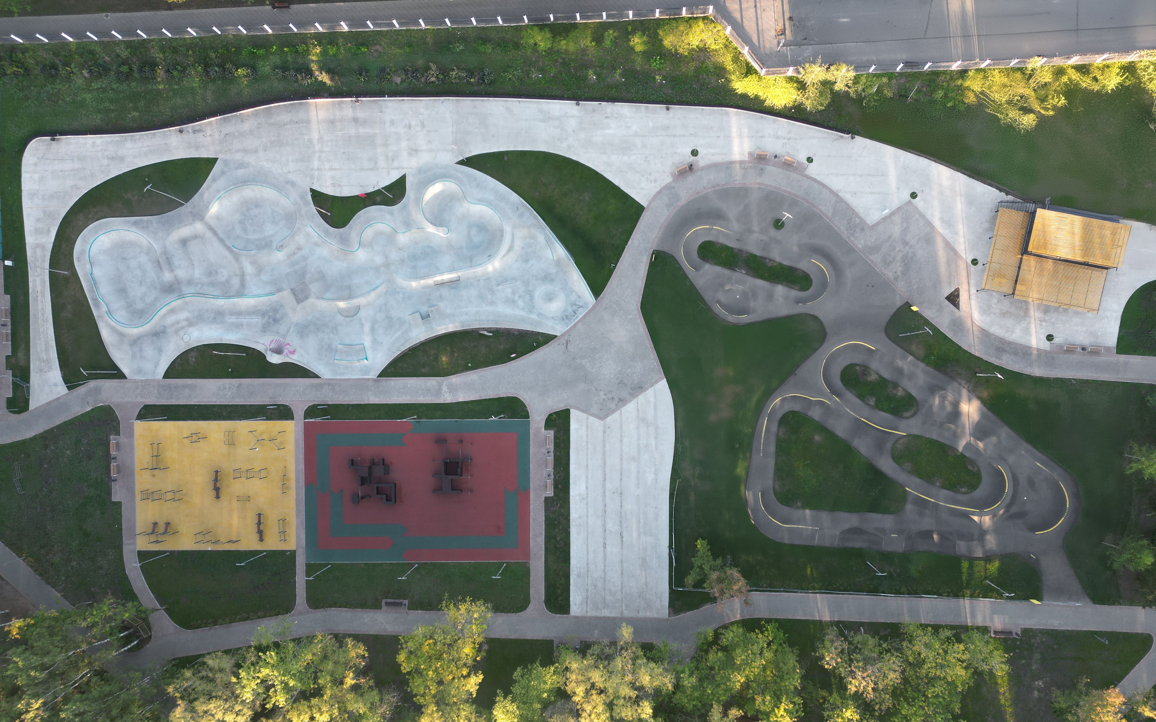 Экстрим-зона стала частью спортивного кластера, предлагая возможности не только для катания на скейтах и BMX, но и для занятий на воркаут-площадке и деревянном паркуре.
