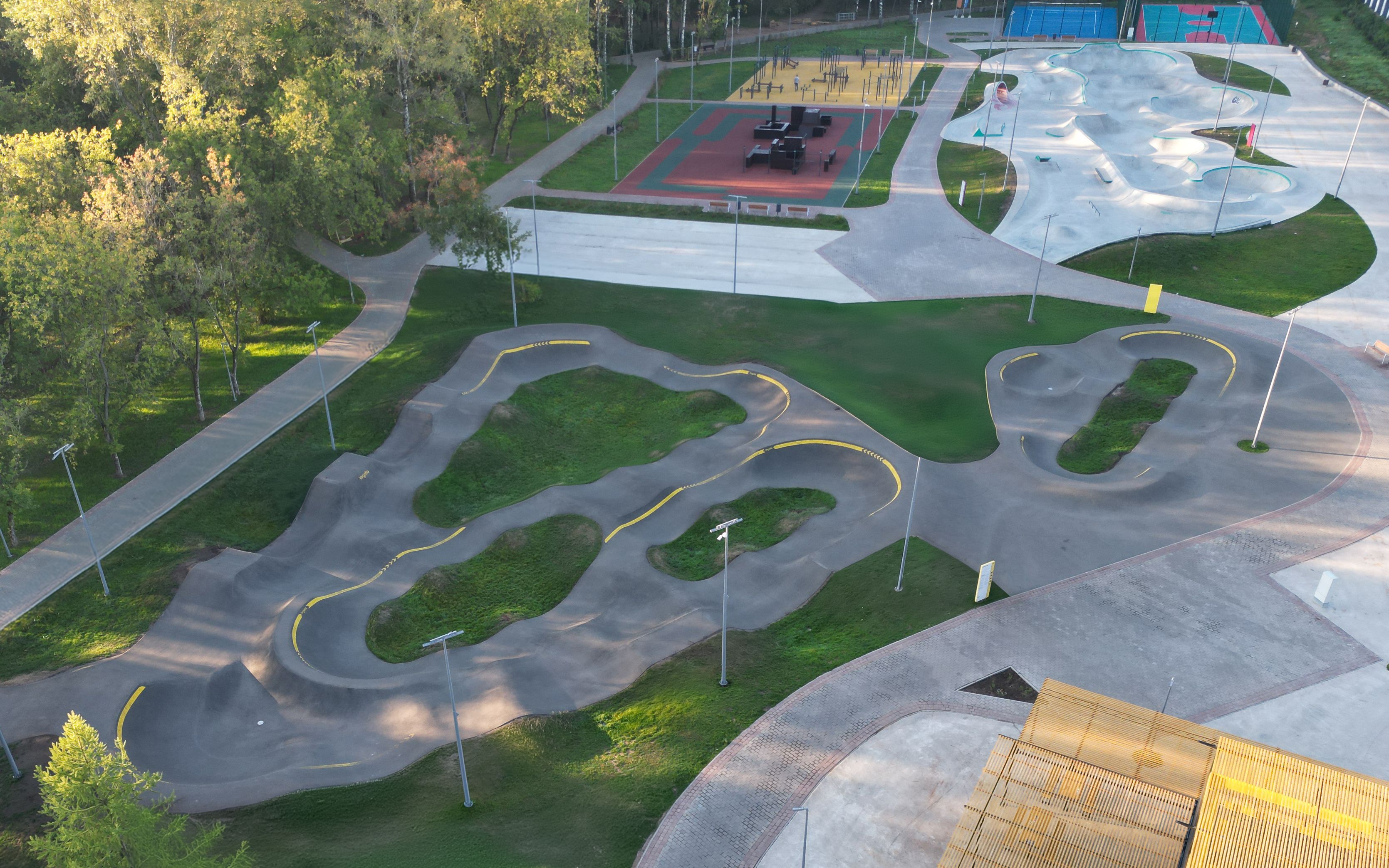 Экстрим-зона включает памп-трек для продвинутых райдеров площадью 450 м² и детский памп-трек, обеспечивая разделение зон катания для разных уровней, что способствует безопасности всех участников. Детский памп-трек обеспечивает безопасные условия для юных спортсменов, давая им возможность освоить базовые навыки катания.