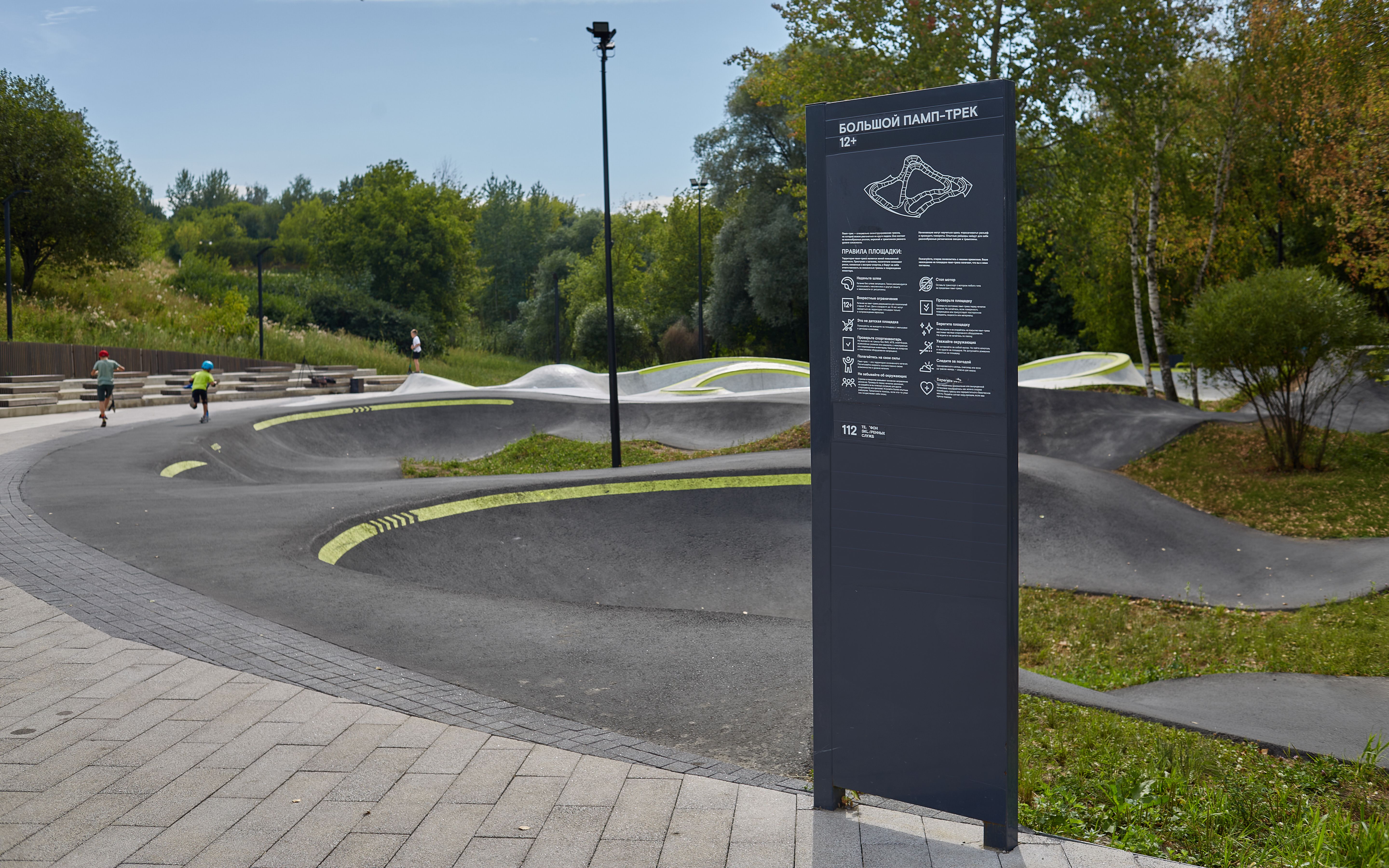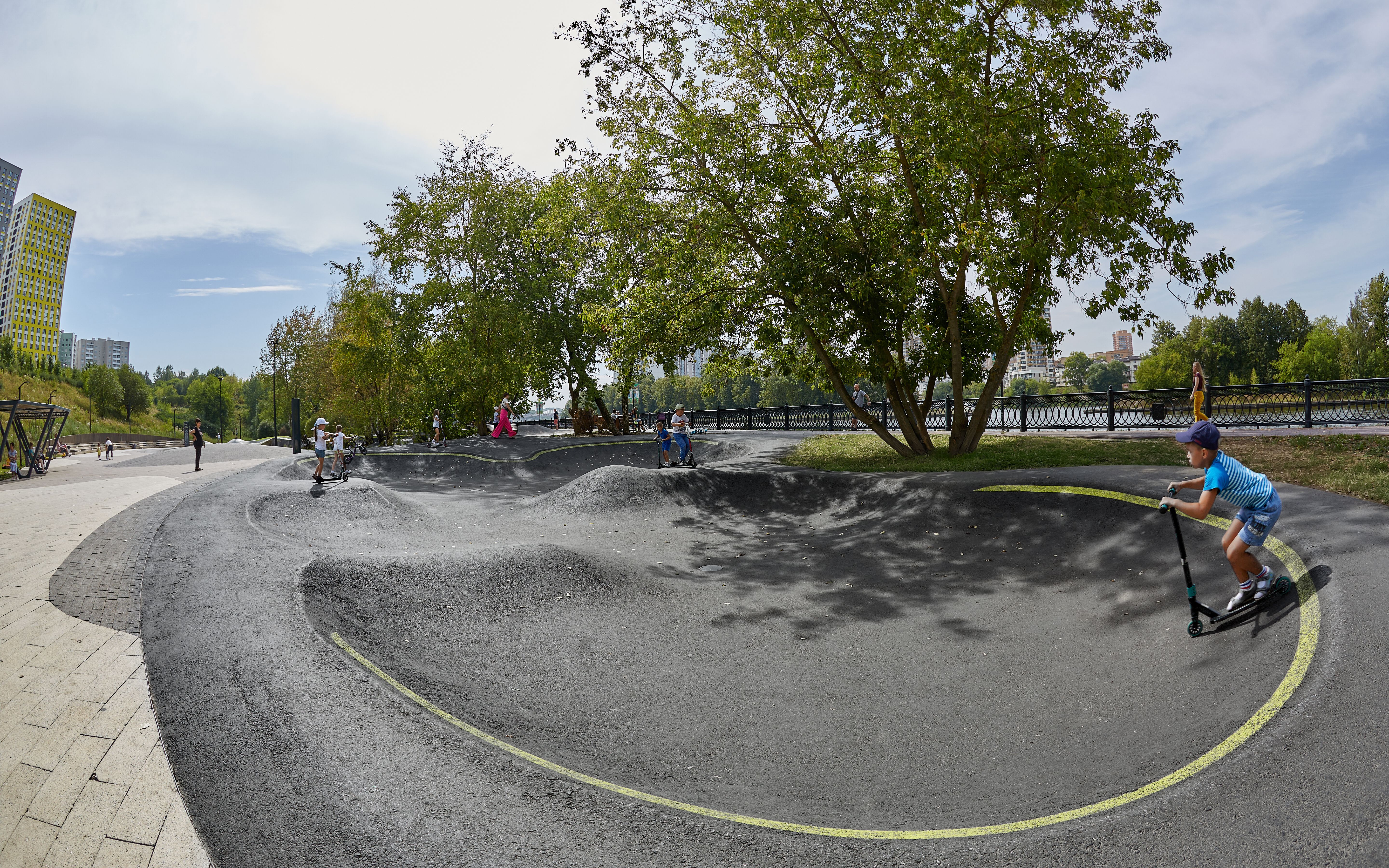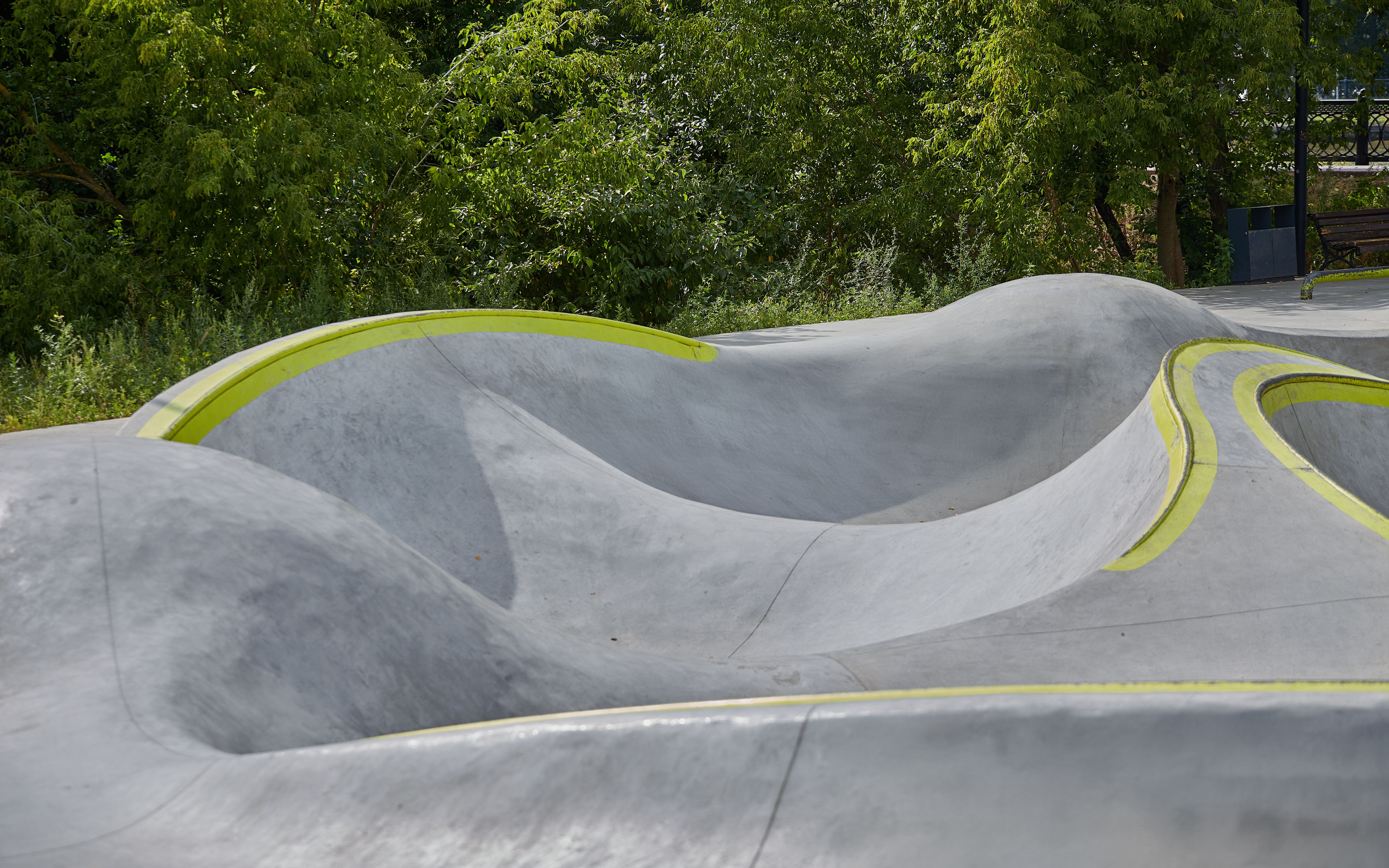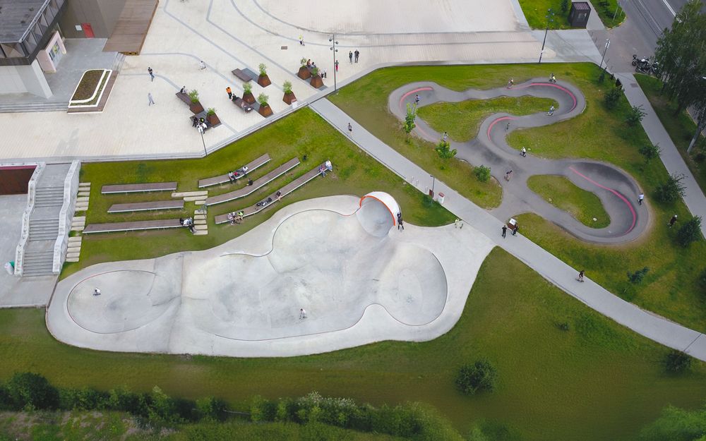 Локация: г. Химки, Московская обл., Россия Год реализации: 2021 Площадь: 4750 м² Координаты: 55.900106, 37.470401 Основные зоны: Скейт-парк — 820 м² Памп-трек — 1450 м² Асфальтовый боул — 350 м² МАФ, зоны отдыха с амфитеатром и перголой