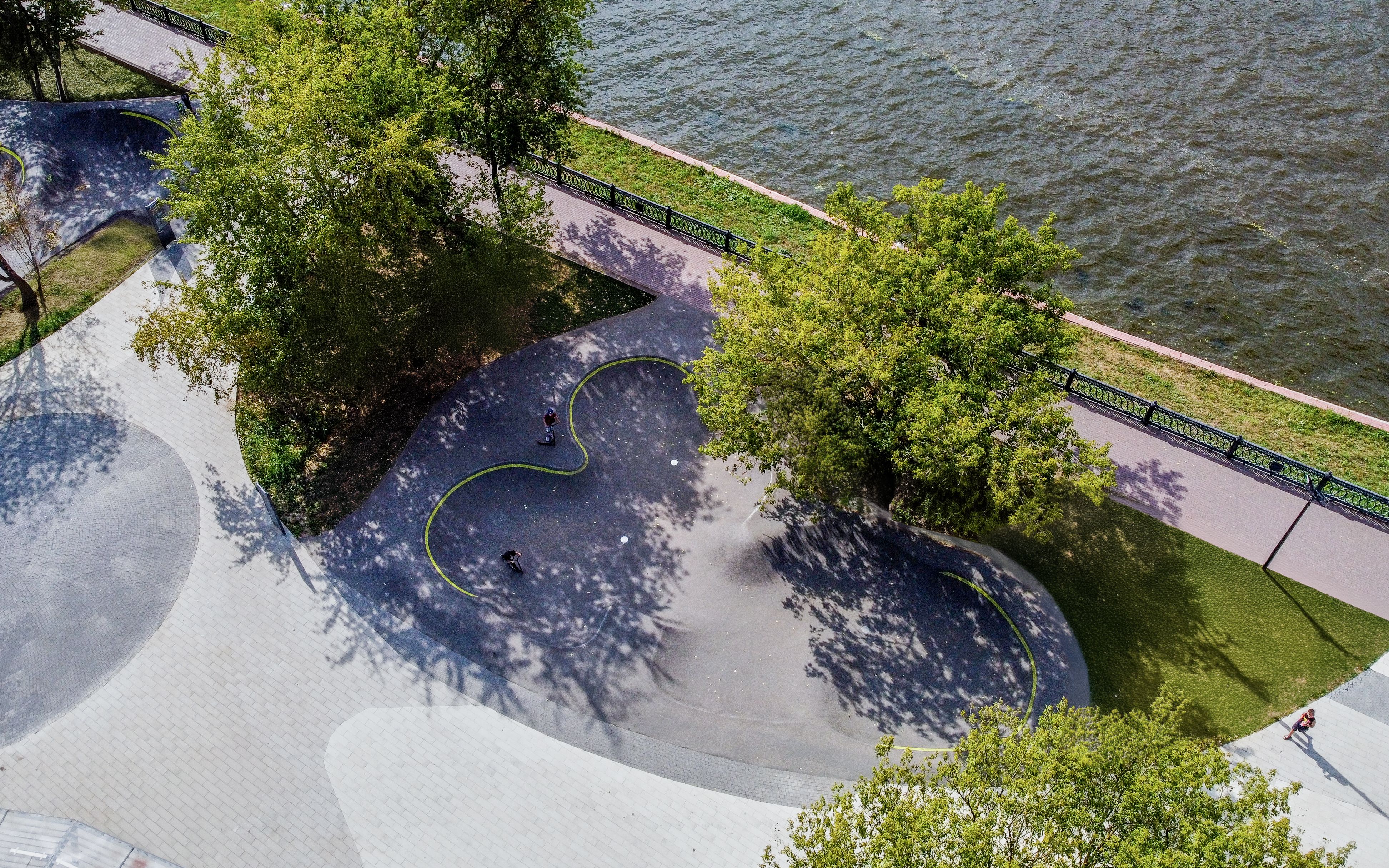 Парк "Экоберег", относящийся к категории L, включает скейт-парк, памп-трек и асфальтовый боул, что делает его идеальным местом для райдеров всех уровней. Скейт-парк оборудован фигурами для отработки трюков различной сложности, а асфальтовый боул является комфортной зоной для младших спортсменов. Важной частью парка является обширная общественная зона с перголой, амфитеатром и зонами отдыха, что делает его не только спортивным, но и семейным местом для встреч и отдыха.