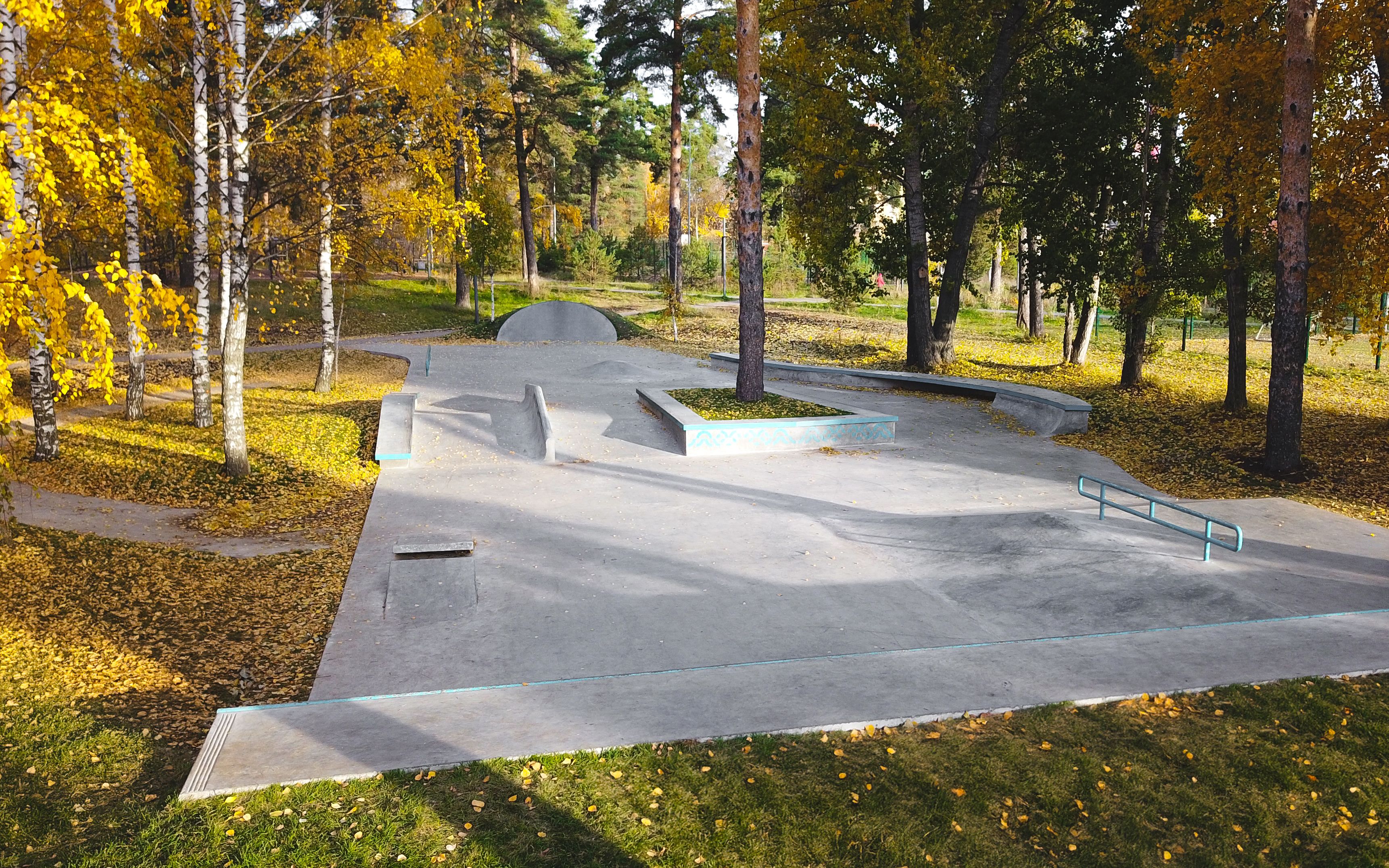 Скейт-парк гармонично вписан в природный ландшафт парка имени Урицкого. Территорию окружают высокие сосны и березы, которые создают естественную тень, сохраняя прохладу и комфорт в жаркое время дня. Архитектурные решения плавно сочетаются с окружающей природой, создавая баланс между современными спортивными зонами и естественной зеленью.